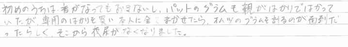 夜尿症の原因が、抗利尿ホルモンの分泌不十分など、神経の未発達からくるので改善するのは大変だと思い、半信半疑で利用を始めました。